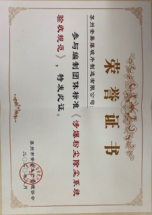 公司于2019年被认定为江苏省高新技术企业,2019年获得国际粉尘检测与控制联合会成员单位,2020年参与涉爆粉尘除尘系统验收规范的起草,2022年被认定为江苏省专精特新中小企业。