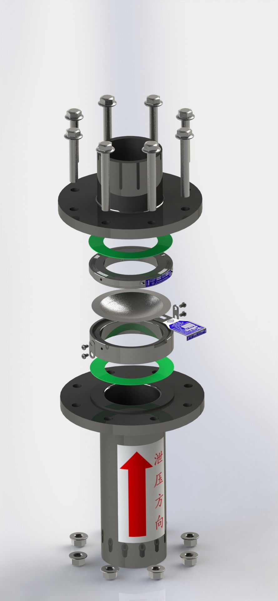 5. 安装时需严格按照爆破片的泄放侧方向及夹持器的泄放侧方向安装。