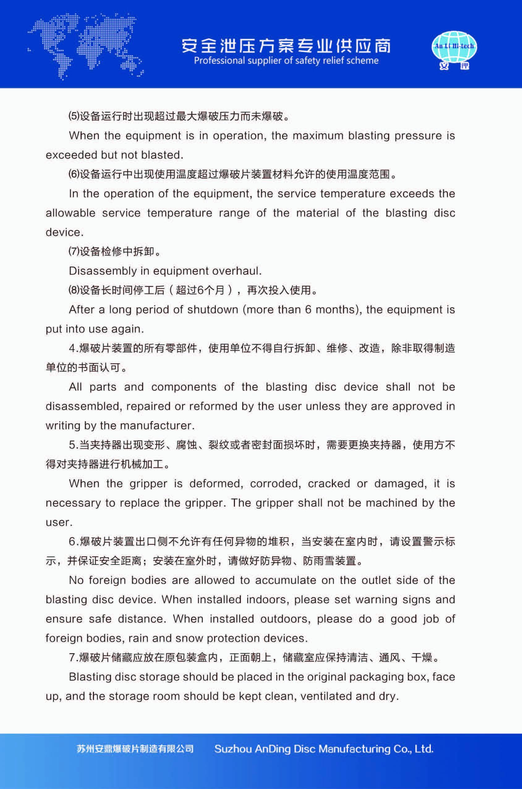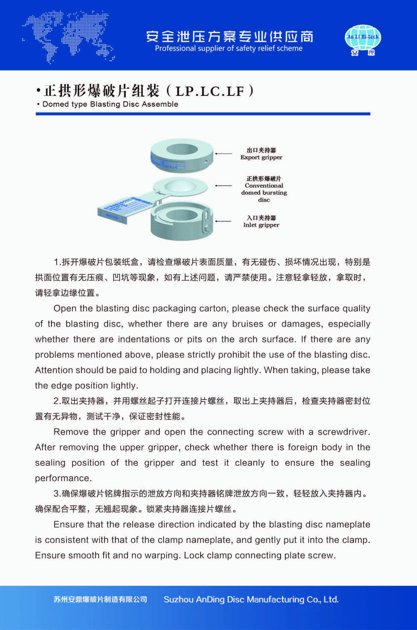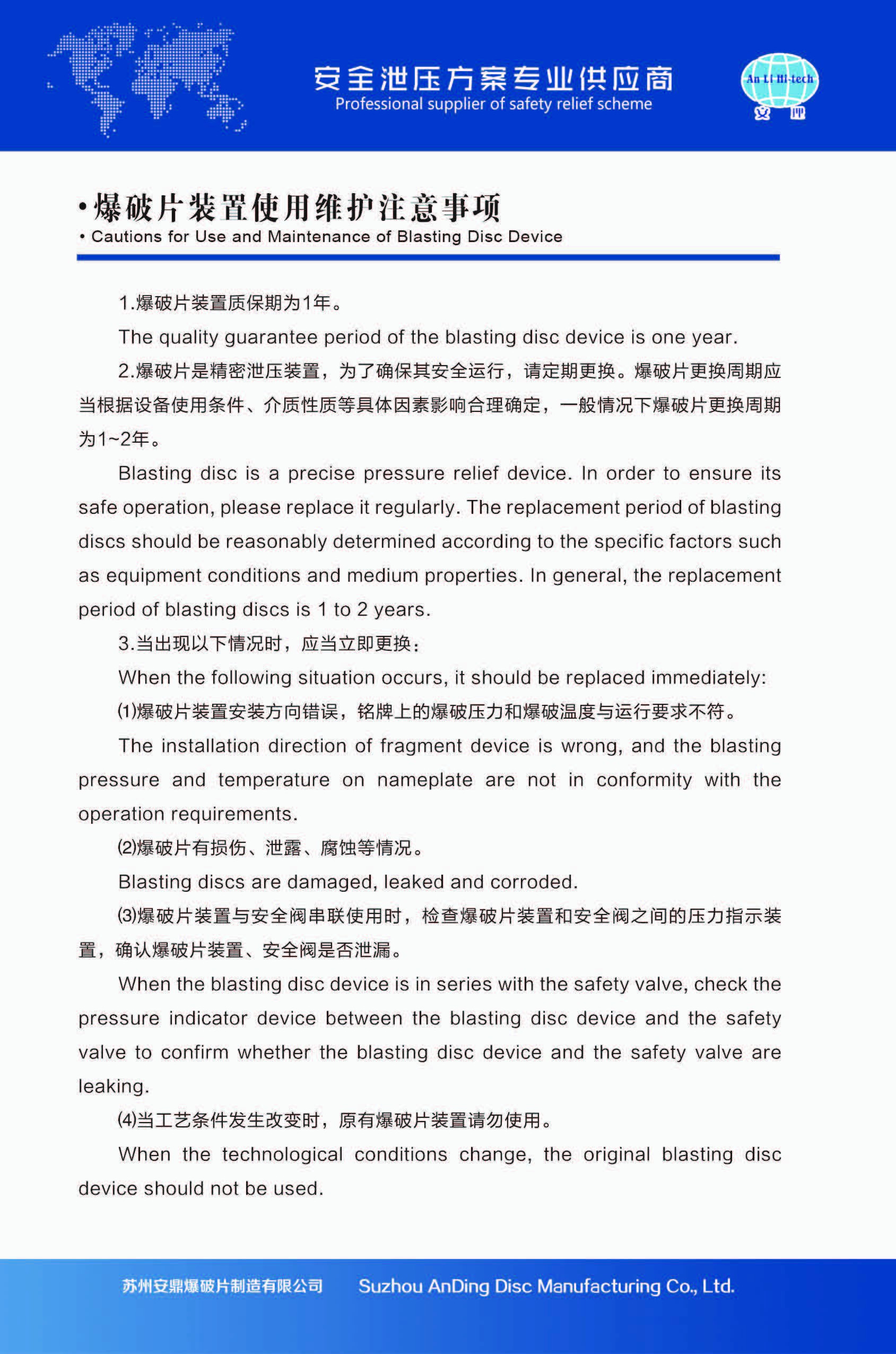 欢迎来到苏州安鼎爆破片制造有限公司网站,我们专注于爆破片装置、无焰泄放装置、隔爆阀装置等安全产品的研发、制造和销售!
